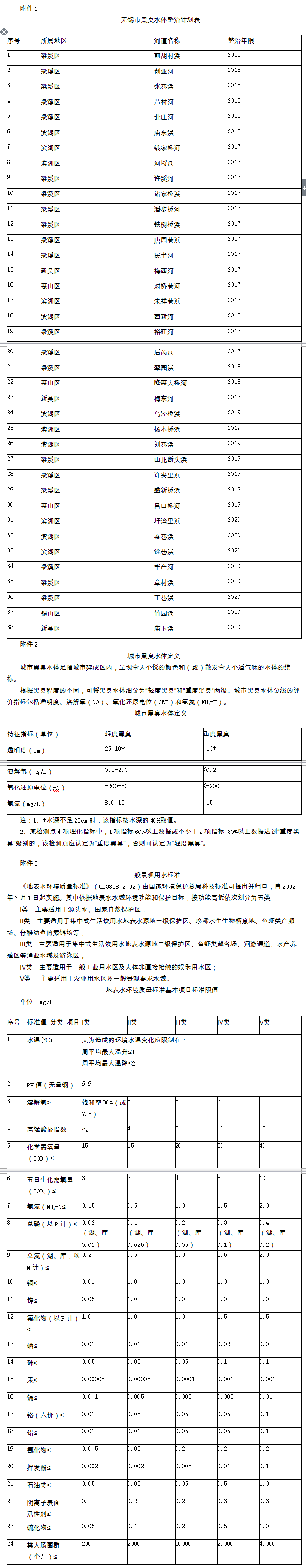 附件:1. 無(wú)錫市黑臭水體整治計(jì)劃表