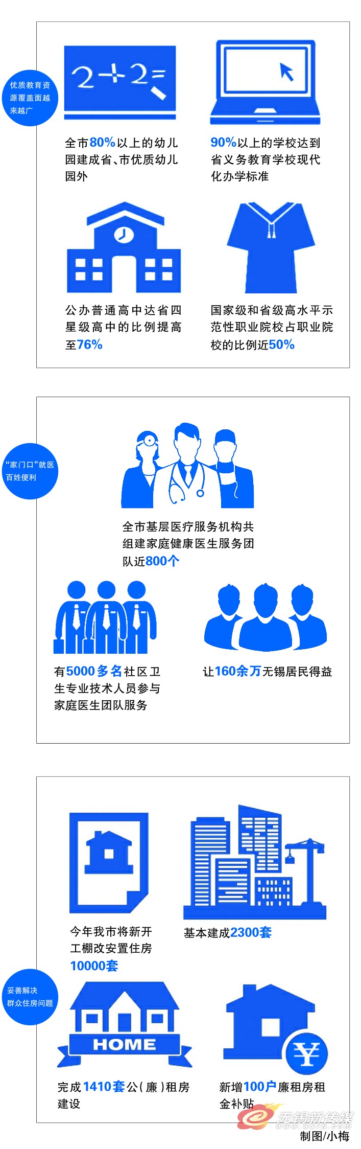 人民群眾對民生福祉最關心。過去五年,作為責任主體的全市各級政府部門對補齊民生“短板”實施了一系列的措施,無錫百姓的民生“大餐”收獲滿滿。未來五年,公共財政資源將重點投向基本民生保障領域,非基本領域則更多發揮市場力量,讓百姓享有更好的教育、更穩定的工作、更滿意的收入、更可靠的社會保障、更高水平的醫療衛生服務、更舒適的居住條件。