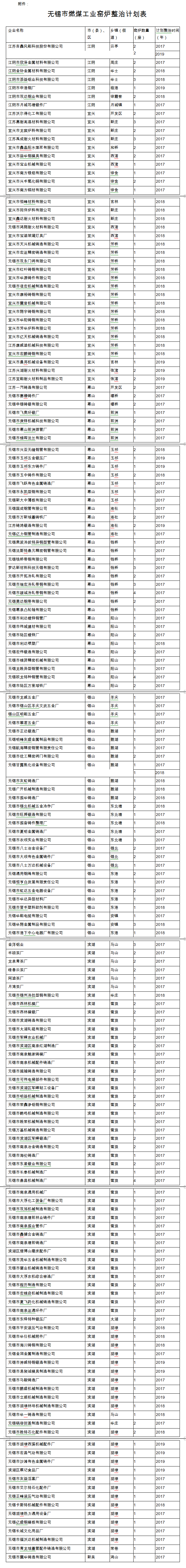 附件:無錫市燃煤工業窯爐整治計劃表