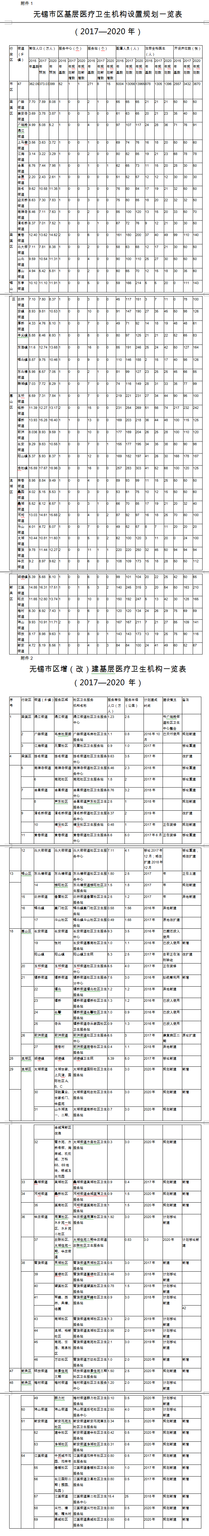 附件:1.無錫市區基層醫療衛生機構設置規劃一覽表(2017—2020 年);