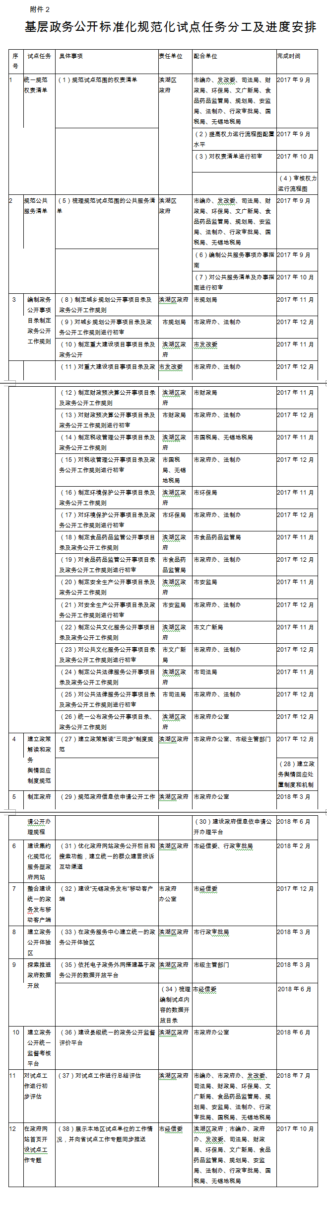 2.基層政務(wù)公開(kāi)標(biāo)準(zhǔn)化規(guī)范化試點(diǎn)任務(wù)分工及進(jìn)度安排