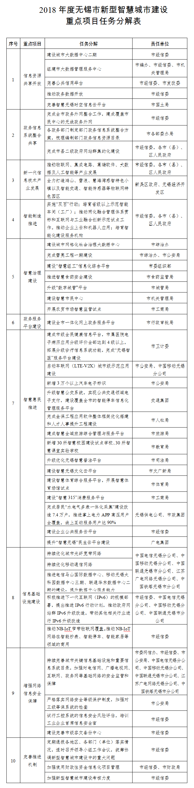 附件:2018年度無(wú)錫市新型智慧城市建設(shè)重點(diǎn)項(xiàng)目任務(wù)分解表