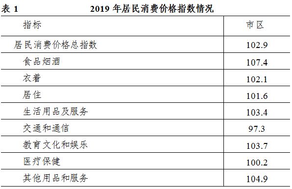 全年市區居民消費價格指數(CPI)為102.9,比上年提高0.6個百分點。其中服務項目價格指數為102.1,消費品價格指數為103.5。