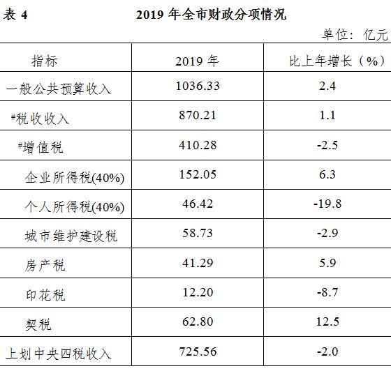 全市一般公共預算收入達到1036.33億元,比上年增長2.4%。財政支出結構繼續調整,一般公共預算支出1117.58億元,比上年增長5.8%。
