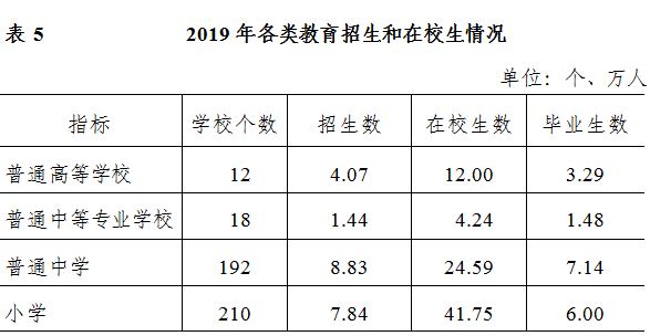 全市共有普通高校12所。普通高等教育本專科招生3.78萬人,在校生11.14萬人,畢業生3.08萬人;研究生教育招生0.29萬人,在校生0.85萬人,畢業生0.21萬人。全市中等職業教育在校生達6.6萬人(含技校)。九年義務教育鞏固率100%,高中階段教育毛入學率100%,普及高中階段教育。特殊教育招生269人,在校生1449人。全市共有幼兒園508所,比上年增加72所;在園幼兒20.46萬人,比上年增加0.51萬人。