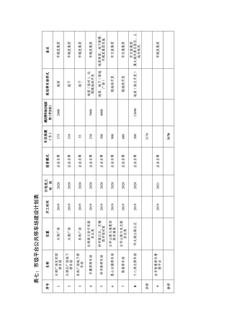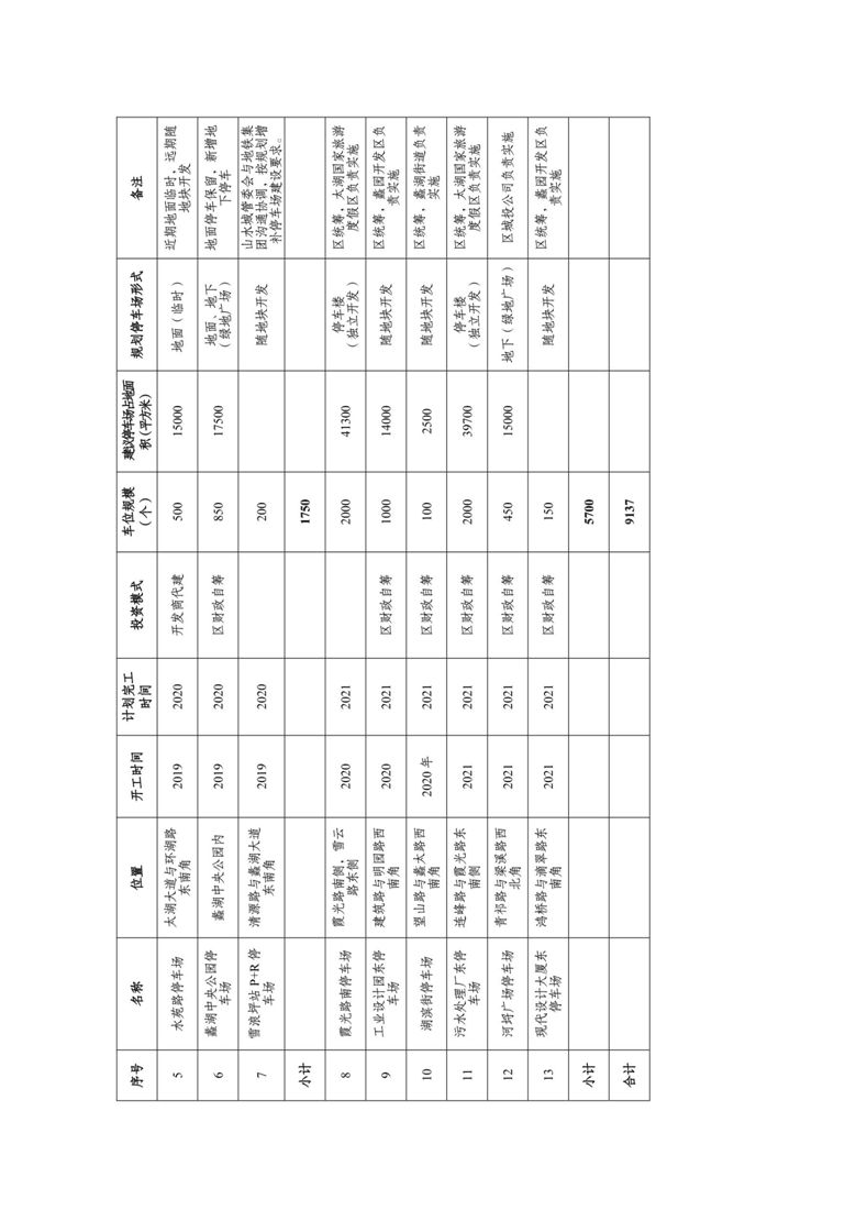 2019年至2021年,市區計劃建設完成107個停車場建設項目,新增公共停車位32830個。其中,梁溪區28個項目6030個停車泊位,無錫經濟開發區(太湖新城)16個項目4015個停車泊位,濱湖區13個項目9137個停車泊位,新吳區15個項目4000個停車泊位,惠山區16個項目4448個停車泊位,錫山區10個項目2030個停車泊位,市級平臺9個項目3170個停車泊位(詳見附表),分年度建設計劃安排如下: