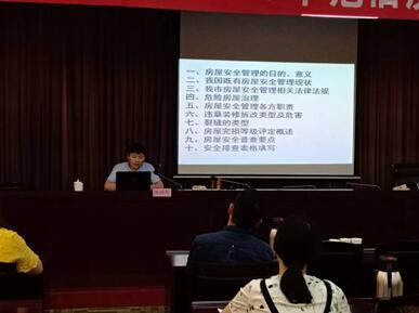 為做好我市的危舊房安全專項整治工作,2020年7月7日,無錫市房屋安全管理處參加了濱湖區住建局組織,由濱湖區7個街道、鎮人民政府街道,區教育局、區民政局、區市場監督局、區文體局、區衛健委相關人員參會的“濱湖區2020年度危舊房安全管理知識培訓”,對參會人員進行危舊房排查業務知識培訓。