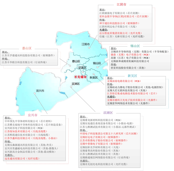 無錫是全國物聯網產業發展高地,為5G產業發展奠定深厚基礎。在主產業鏈中的基礎元器件、物聯網新型終端、網絡及應用產業領域涌現出一批有知名影響力的企業和科研院所;在支撐產業鏈中的大數據、云計算及軟件產業等方面具有一定的知名度。