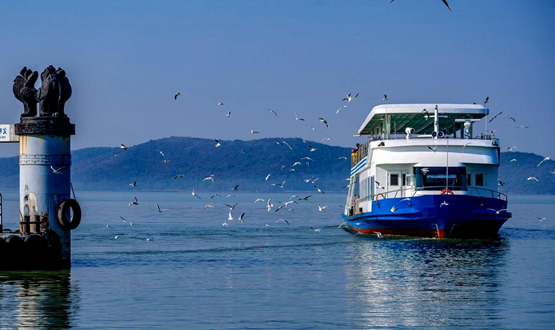 隨著無錫治水力度的持續加大,太湖水生態環境不斷優化,紅嘴鷗這一對水環境要求較高的小精靈把太湖當成了它們度冬的棲息地,每到初冬時節,大量的紅嘴鷗都飛臨無錫太湖安營扎寨,自由自在的翱翔在黿頭渚及周邊的太湖湖面,使觀鳥成為太湖黿頭渚風景區的一大新的景觀。