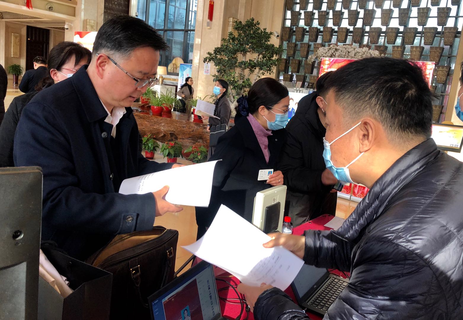 昨天下午,參加市十四屆政協五次會議的委員們報到啦~
