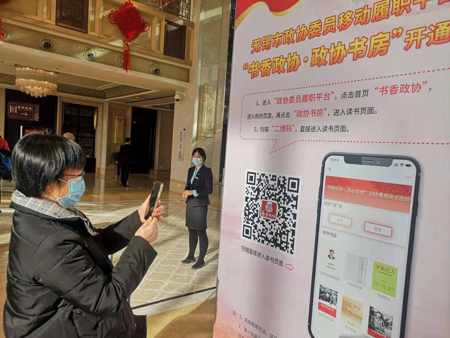 ▲政協委員掃碼體驗“政協書房”