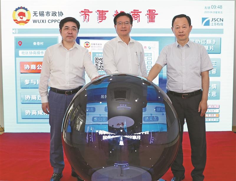 推進基層協(xié)商議事工作。圖為中共無錫市委書記黃欽調(diào)研并共同啟動上線“有事好商量”有線電視平臺。