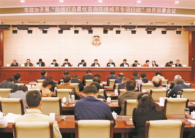 助推營商環(huán)境建設(shè)。圖為市政協(xié)召開開展“助推打造最優(yōu)營商環(huán)境城市專項行動”動員部署會議。