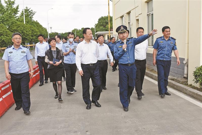 助力市域社會治理現(xiàn)代化。圖為市政協(xié)黨外委員實地察看經(jīng)開區(qū)水鄉(xiāng)苑社區(qū)警網(wǎng)融合聯(lián)動指揮中心。