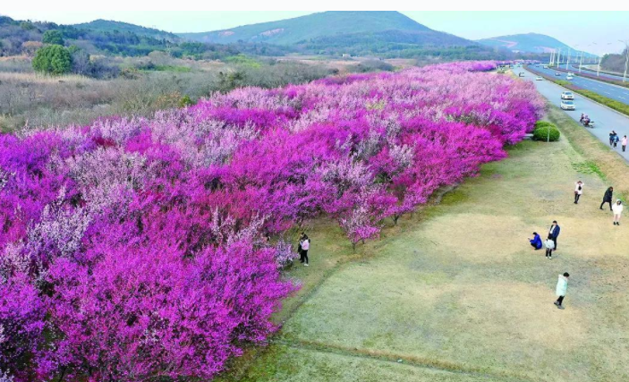 春節(jié)期間,山野上的梅花競相吐蕊,暗香浮動(dòng)。一團(tuán)團(tuán)、一簇簇俏立枝頭,交織成斑斕的景色,粉飾了陶都,驚艷了游客,徜徉其間,清香盈袖。