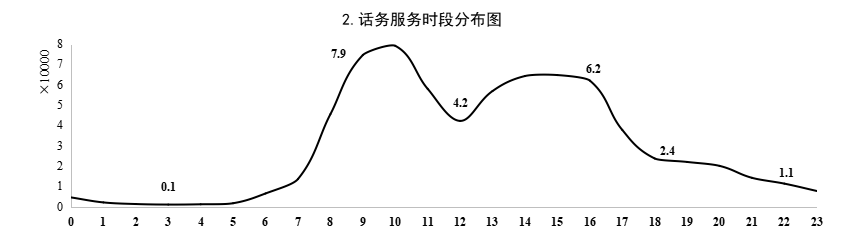 注:橫坐標為時間段,0表示“0時至1時”,其他以此類推;縱坐標表示話務量,單位為萬(通)。