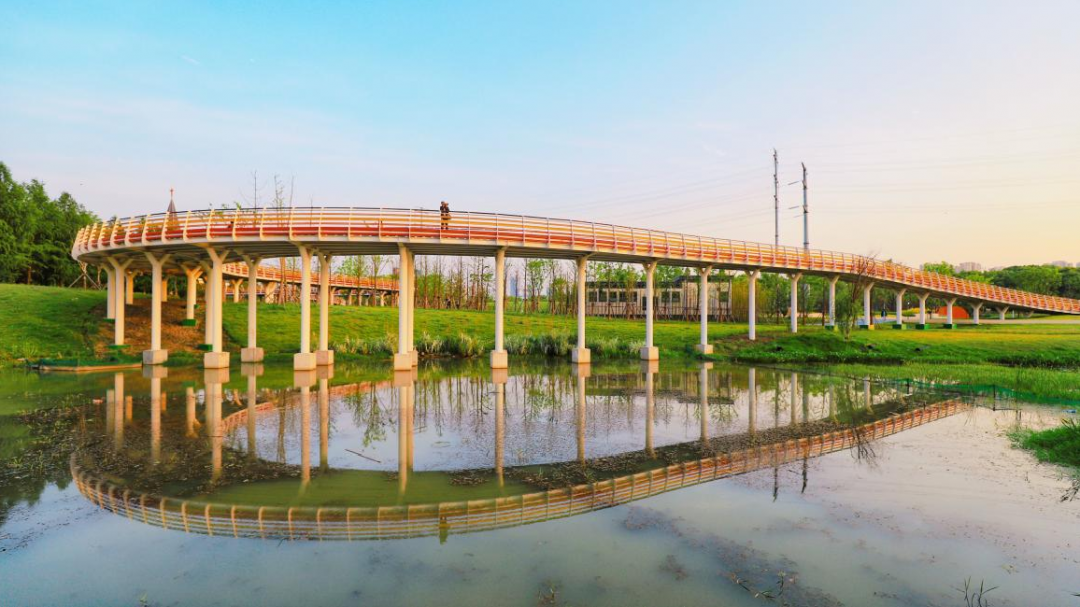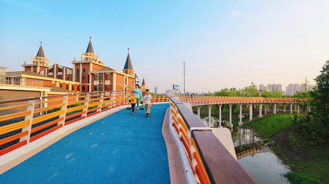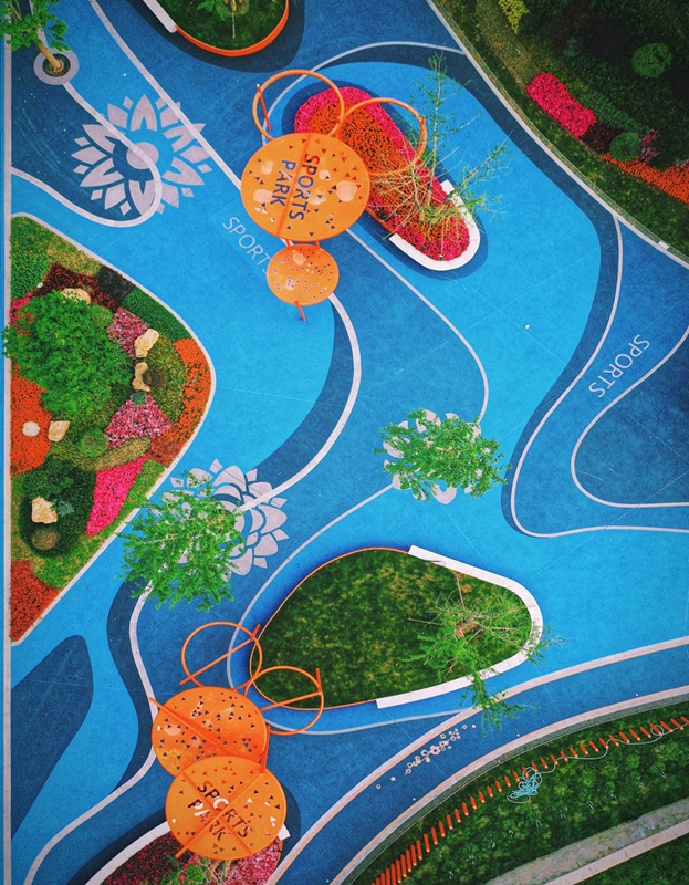 以天空藍顏色為主基調的健身步道貫穿整個云林生態體育公園,總長2600米,這里可徒步,可騎行,可樂跑。不用加任何濾鏡,就能輕松拍出各式美照。