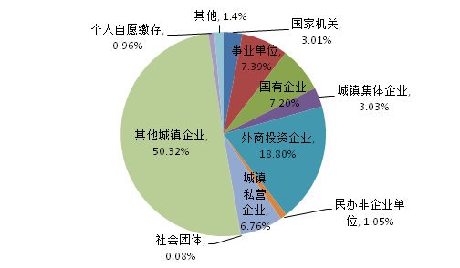 2021年二季度實繳職工數(shù)按不同性質單位分類占比圖