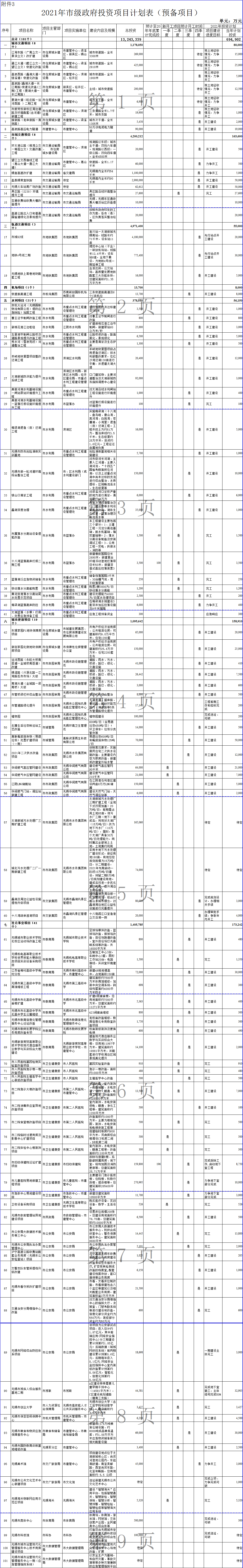 3.無錫市2021年市級政府投資項目計劃(預備項目)