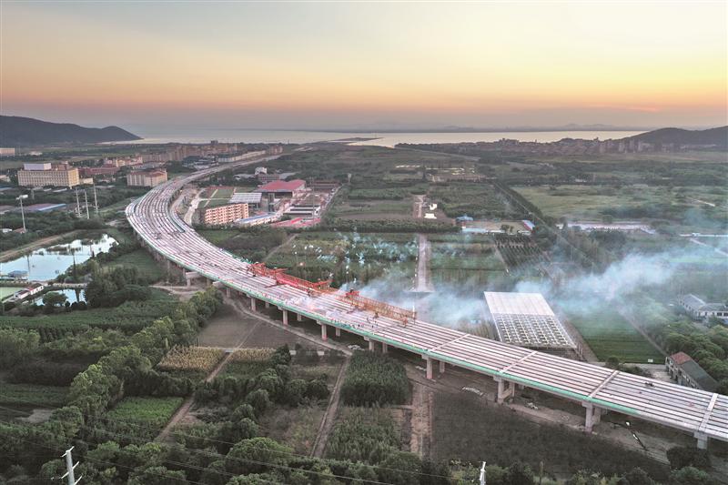 昨天(28日)上午,隨著最后一片預制梁板安裝就位,341省道無錫馬山至宜興周鐵段工程實現高架橋全線貫通。