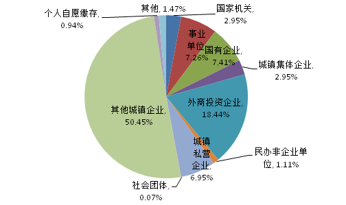 2021年三季度實繳職工數按不同性質單位分類占比圖