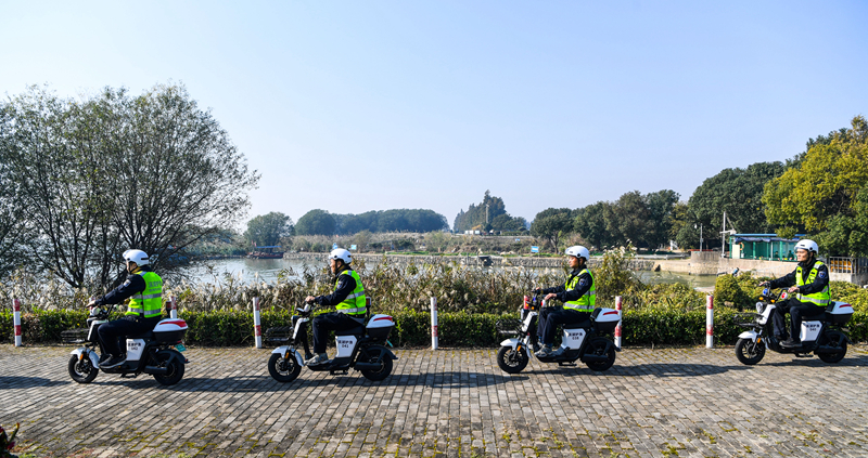 11月15日,雪浪街道護漁隊隊員在太湖沿線巡查。為更好地維護退捕期太湖生態,濱湖區漁政部門與沿湖的雪浪、蠡園、馬山等三個街道緊密協作,組建了全市首批護漁專門隊伍,配備水上巡邏艇、陸上電動巡邏車以及無人機等專業設備,對太湖沿線開展全天候、全方位巡查護漁,嚴厲打擊偷捕等違法活動,助力太湖水產資源恢復。
