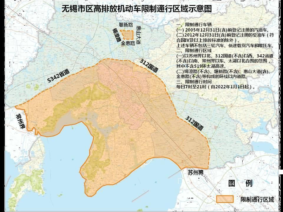 五、本通告自2022年1月1日起施行。2016年8月24日發布的《無錫市人民政府關于調整高污染排放機動車限行區域的通告》(錫政告〔2016〕4號)同時廢止。