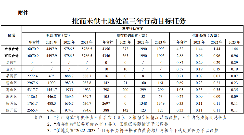 現(xiàn)將《無錫市批而未供土地處置三年行動方案( 2021—2023年)》印發(fā)給你們,請認真貫徹執(zhí)行。