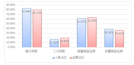 從貸款群體來看,剛需與改善型住房需求職工分別占貸款總人數的29.27%和64.38%。從單位性質來看,以城鎮私營企業及其他城鎮企業職工為主,貸款筆數和貸款金額占比分別為50.26%、49.54%。從購房面積來看,職工貸款購買小于90㎡、90-120㎡房屋居多,分別占貸款總人數的29.27%、38.36%。從主借人繳存基數來看,貸款主要以中、低收入職工為主,分別占貸款總人數的31.46%、66.67%。從貸款類型來看,純公積金貸款和組合貸款占比分別為43.89%、56.11%。從貸款結構來看,首次公積金貸款職工占貸款總人數的82.98%,第二次住房公積金貸款人數占17.02%。具體放貸結構如下: