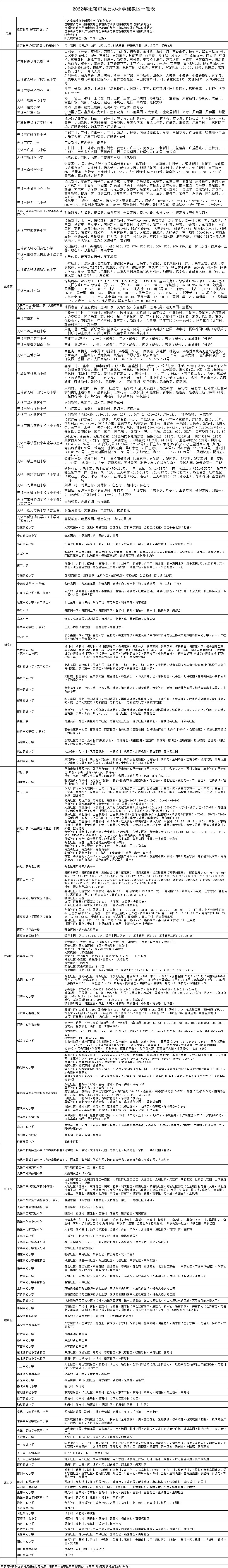 內容概述 2022年無錫市區(qū)公辦小學施教區(qū)一覽表