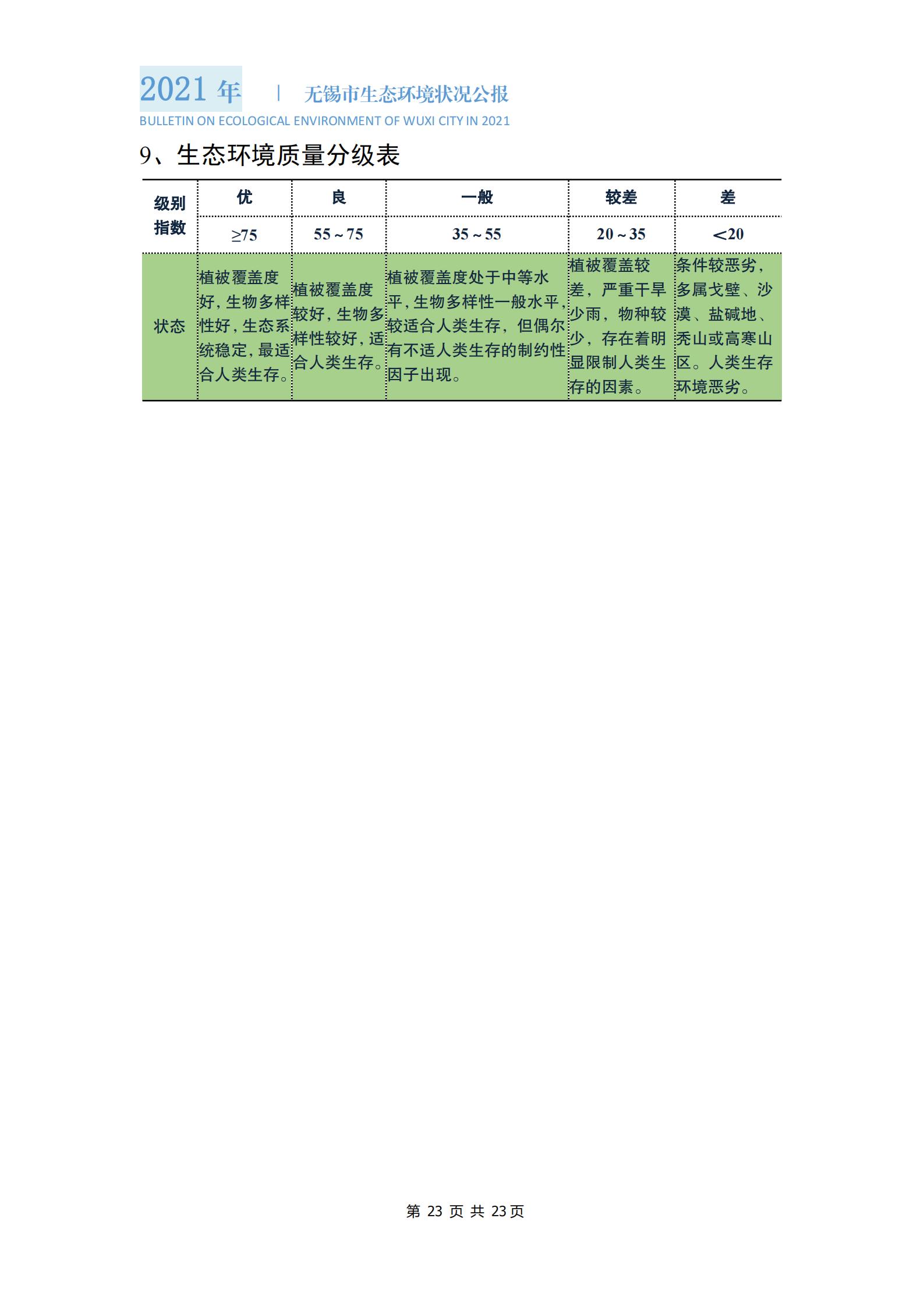 2021年度無錫市生態(tài)環(huán)境狀況公報 |