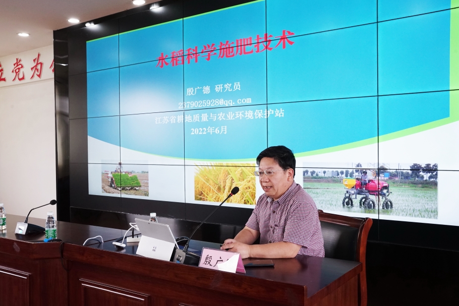 培訓(xùn)會上,江蘇省耕地質(zhì)量與農(nóng)業(yè)環(huán)境保護站殷廣德研究員、中國科學(xué)院南京土壤研究所施衛(wèi)明研究員兩位專家分別就測土配方施肥技術(shù)、水稻側(cè)深施肥技術(shù)進行了授課。