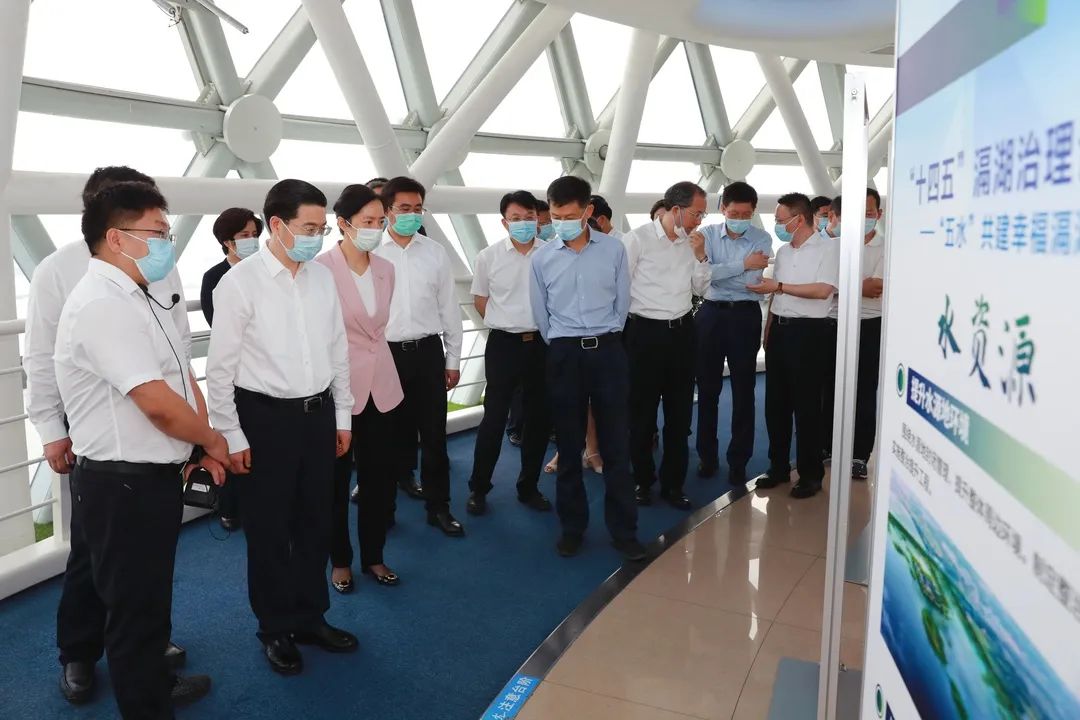 調(diào)研期間,儲(chǔ)永宏乘船察看太湖水質(zhì)藻情,詳細(xì)了解“水陸空天”湖體水質(zhì)藻情立體監(jiān)測監(jiān)控系統(tǒng),并聽取省生態(tài)環(huán)境、水利、住建等部門以及無錫市政府關(guān)于今年以來太湖安全度夏工作進(jìn)展情況匯報(bào)。儲(chǔ)永宏充分肯定太湖治理取得的成績。他表示,太湖水質(zhì)藻情穩(wěn)中趨好,流域水環(huán)境質(zhì)量改善顯著,這得益于沿湖各地政府和省有關(guān)部門多年持續(xù)努力,要持續(xù)做好太湖治理工作,向人民展現(xiàn)最美太湖。