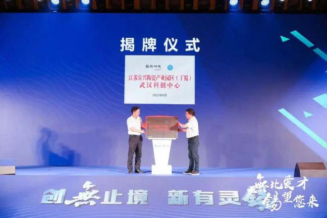6月28日,武漢賽區活動現場舉行了江蘇宜興陶瓷產業園區(丁蜀)武漢科創中心揭牌儀式。