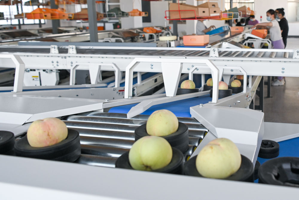 7月8日,工人在無錫太湖陽山水蜜桃科技有限公司內(nèi)分裝水蜜桃。