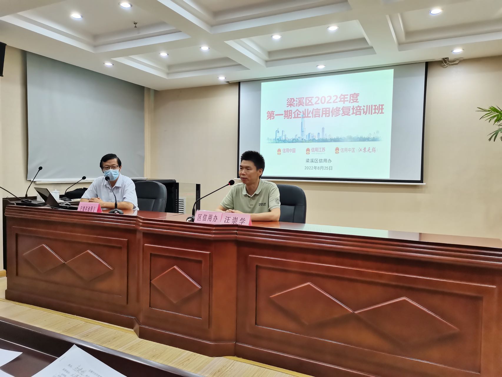 為進(jìn)一步推進(jìn)信用領(lǐng)域突出問(wèn)題專項(xiàng)治理工作,貫徹落實(shí)國(guó)家《關(guān)于對(duì)失信主體加強(qiáng)信用監(jiān)管的通知》(發(fā)改辦財(cái)金〔2018〕893號(hào))及省《關(guān)于深入推進(jìn)我省失信主體信用修復(fù)培訓(xùn)專項(xiàng)行動(dòng)方案》(蘇信用辦〔2019〕13號(hào))文件精神,保障信用主體權(quán)益,方便失信主體在規(guī)定期限內(nèi)糾正失信行為、消除不良影響,修復(fù)自身信用,梁溪區(qū)信用辦8月25日下午舉辦2022年度第一期企業(yè)信用修復(fù)培訓(xùn)班,42家企業(yè)參加培訓(xùn),區(qū)信用辦副主任汪崇學(xué)做動(dòng)員講話。