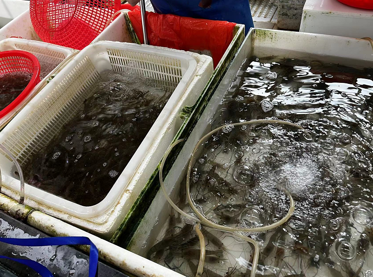 禁捕后,淡水魚蝦的銷售份額逐年下降,但海鮮的占比明顯提升。“最近每天的水產銷售在70—80噸,其中海鮮占到了20%。”榮光偉說,很多原先做淡水水產的經營戶也改行賣起了海鮮,現在整個市場里專營海鮮的超過了20家,兼顧做海鮮的更是比比皆是。