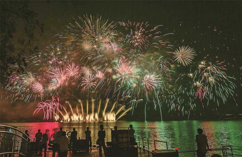 禮贊祖國,華夏共賀。整整五日,太湖夜空,都將點綴著五光十色的焰火,縈繞著靈動躍然的音樂旋律。泛舟太湖,遙望煙花與音樂共譜舞曲。火樹銀花照亮迢迢銀河的同時,也映照出光影里的巧笑倩兮。這是黿頭渚為游客送上的佳節厚禮,愿如此良辰美景,可與世人共享。