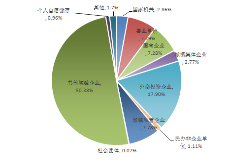 從繳存主體看,以非公群體為主,繳存人數占三季度實繳職工數的79.9%,其中城鎮私營企業及其他城鎮企業職工繳存占比更是高達58.16%。具體繳存結構如下: