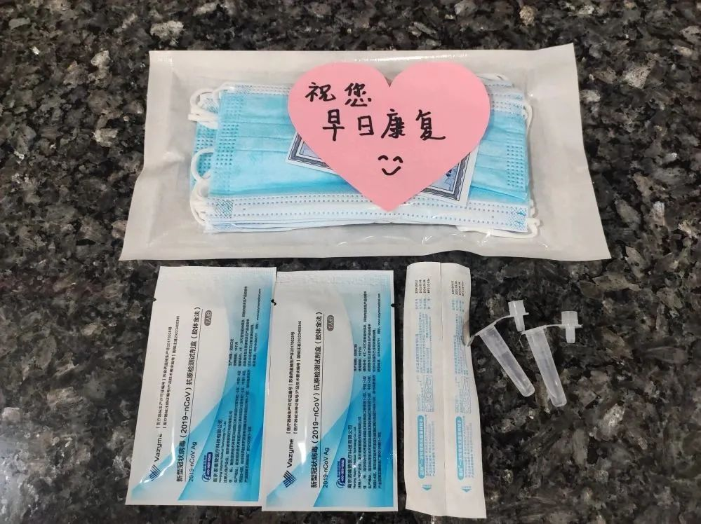 “抗原已經放在101門口柜子上了,3個”