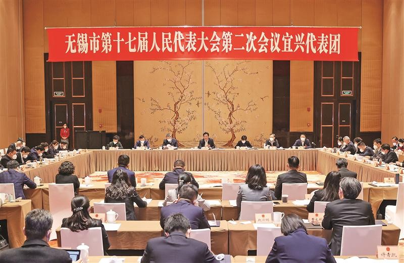 宜興代表團氣氛熱烈,封曉春、胡小堅、張達志、錢西元、劉賽洪、楊伯民、董國強、曹志宏、蔣仲良等代表圍繞報告談體會、提建議、話發展。大家一致認為,政府工作報告著眼全局、主題鮮明、內涵豐富、重點突出,通篇貫徹黨的二十大精神,充分體現黨中央和省、市委部署要求,注重汲取各方智慧力量,展現攀高比強目標追求,強化實干落實工作導向,字里行間體現了強烈的責任擔當和為民情懷,是一份高舉旗幟、鼓舞士氣、催人奮進的好報告。大家還圍繞推進錫宜一體化發展、培育壯大戰略性新興產業、打造交通樞紐城市、優化教育資源布局、加快科創載體建設等方面提出了針對性意見建議。