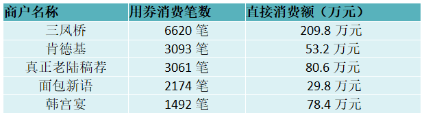 “樂享新春”餐飲類商戶用券排行榜