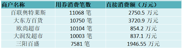 “樂享新春”百貨零售類商戶用券排行榜
