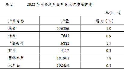全年糧食總產(chǎn)量55.63萬噸,比上年增長1.0%。油料總產(chǎn)量7643噸,比上年增長0.9%,其中油菜籽6882噸,比上年增長1.7%。茶葉總產(chǎn)量4117噸,比上年增長0.3%。園林水果總產(chǎn)量18.20萬噸,比上年增長7.8%。
