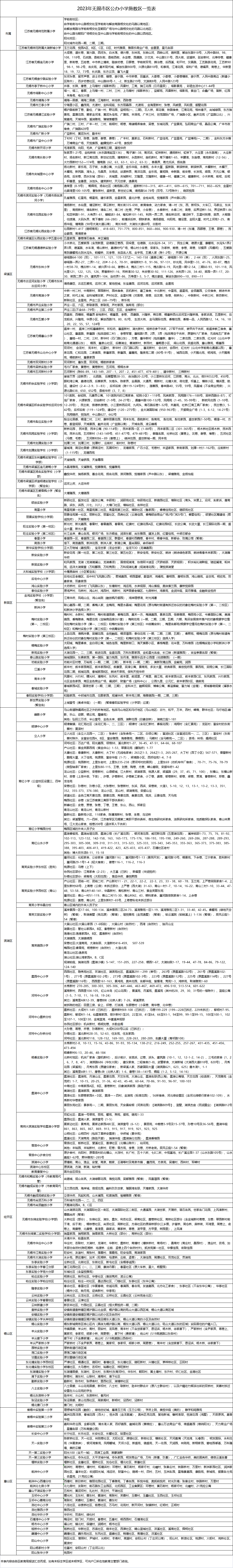 內容概述 2023年無錫市區公辦小學施教區一覽表