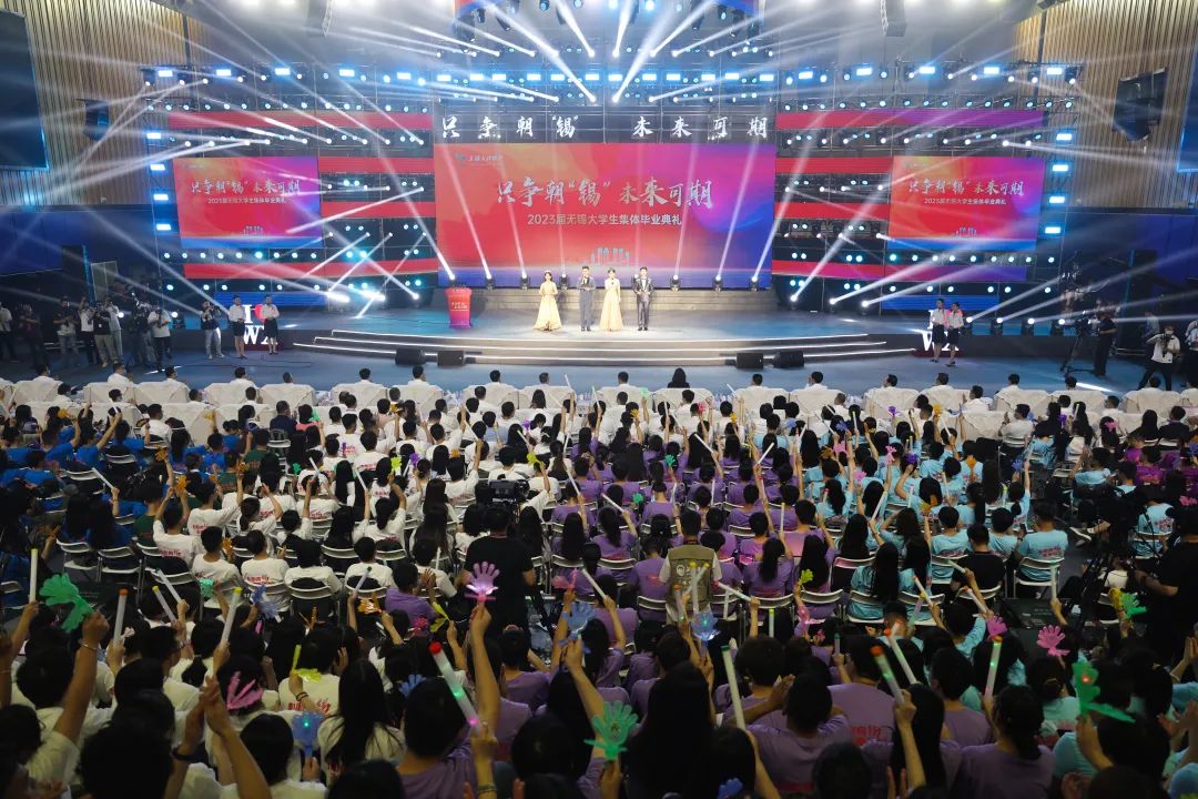 集體畢業典禮在2023屆無錫大學生畢業主題曲《只此青春》中開場,共分為“只此青春”“只此無錫”“星辰大海”三個篇章,微電影、舞蹈、音詩畫、歌伴舞等節目輪番登場,彰顯出當代大學生的朝氣蓬勃、青春洋溢。