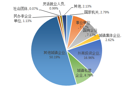 2023年四季度實(shí)繳職工數(shù)按不同性質(zhì)單位分類(lèi)占比圖