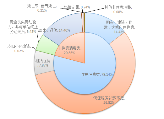 2023年四季度,住房消費(fèi)類(lèi)提取金額為49.4億元,環(huán)比增長(zhǎng)5.35%,占當(dāng)季提取額的79.14%。其中還貸提取占比最高,提取金額35.47億元,占當(dāng)季提取額的56.82%。具體提取結(jié)構(gòu)如下: