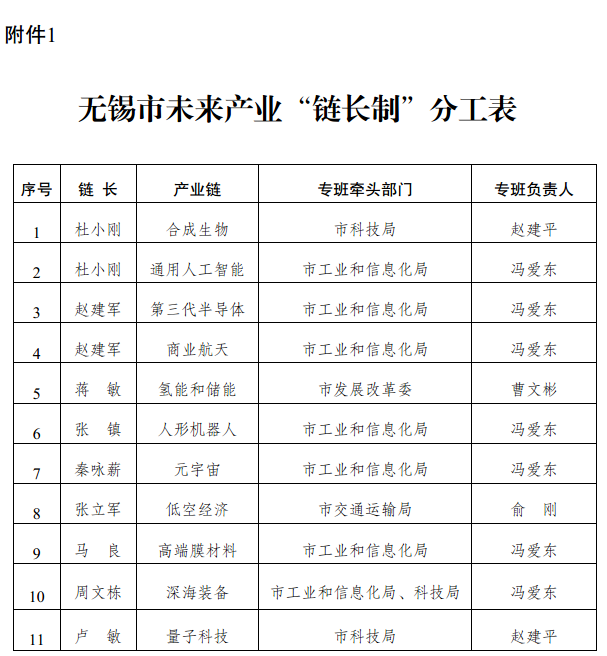 附件:1.無錫市未來產業“鏈長制”分工表