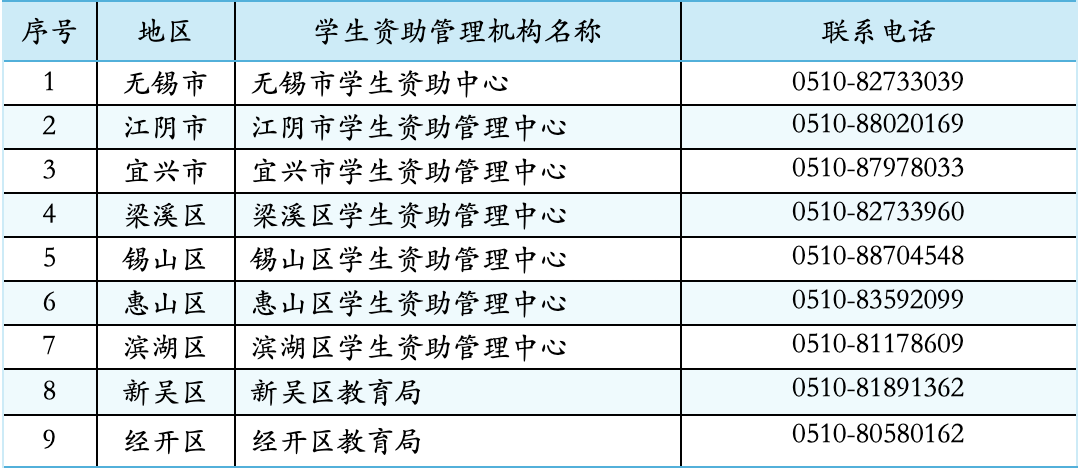 如有疑問,歡迎在工作時間撥打市、縣(區(qū))學(xué)生資助咨詢電話: